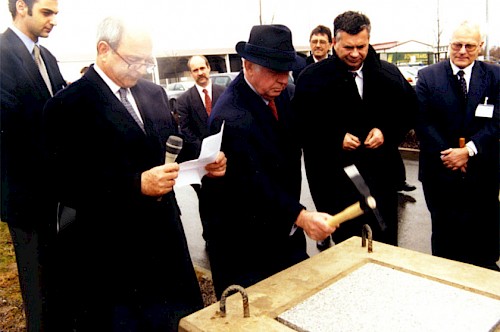 Bereits wenige Tage später wird der Grundstein für das neue Domizil der Firma gelegt.